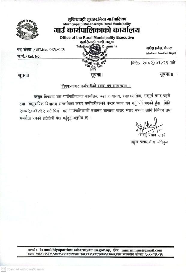 करार कर्मचारीको म्याद थप सम्बन्धमा ।