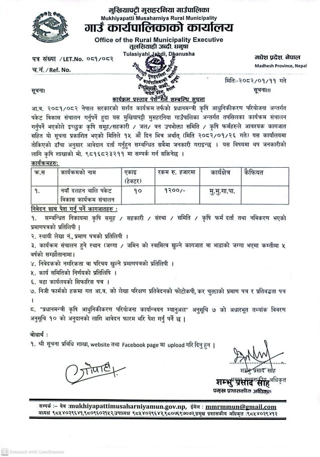 कार्यक्रमको प्रस्ताव पेश गर्ने सम्बन्धी सूचना