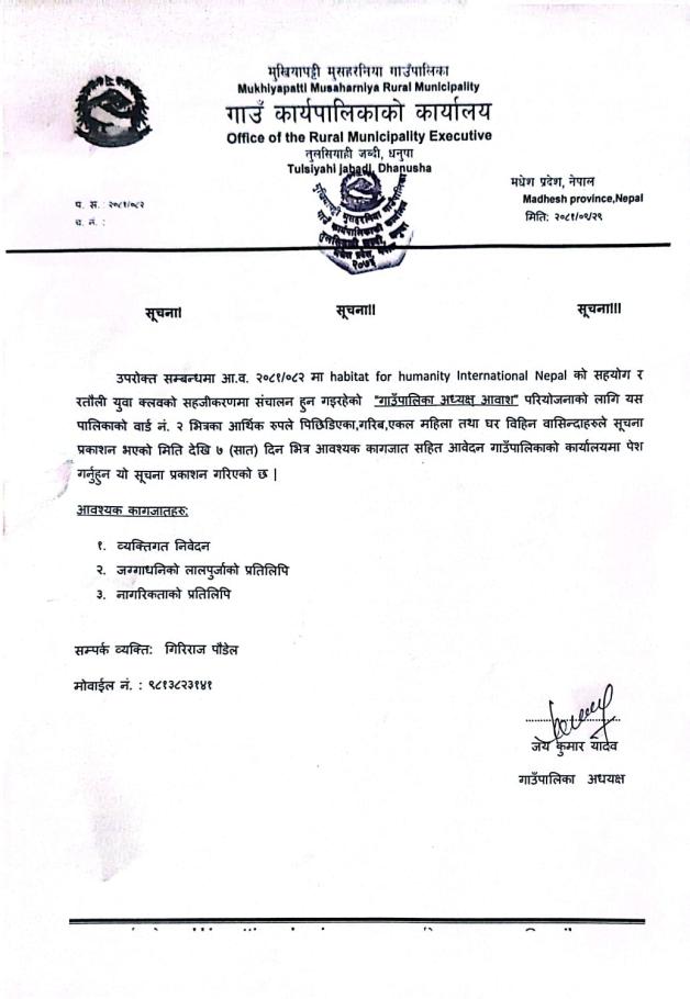 गाउँपालिका अध्यक्ष आवास सम्बन्धी सूचना