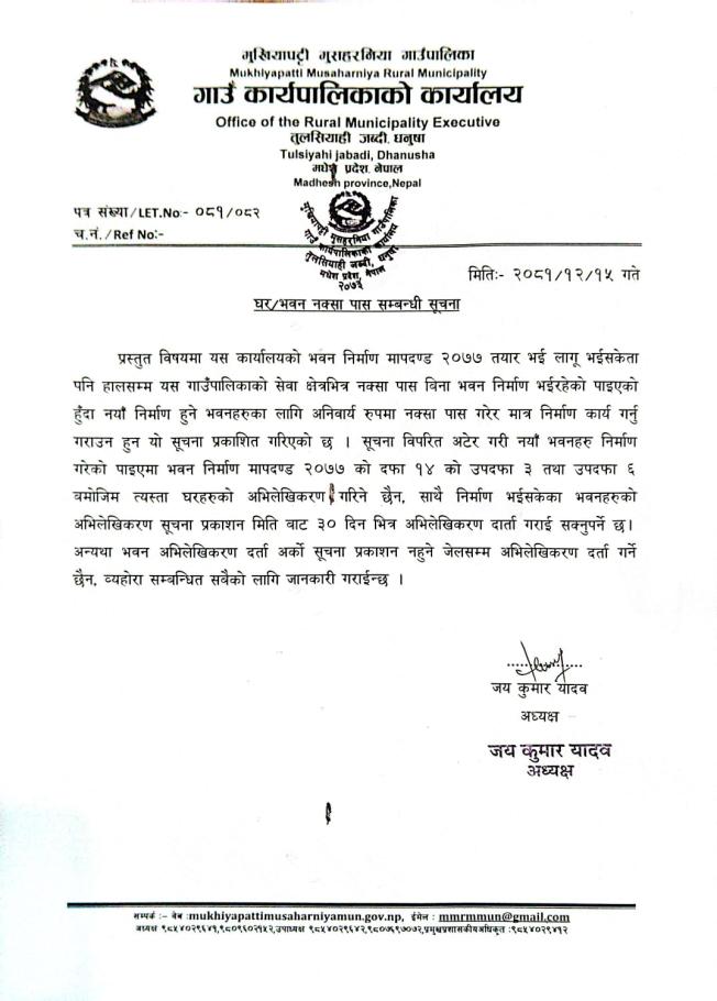 घर/भवन नक्सा पास सम्बन्धी सूचना