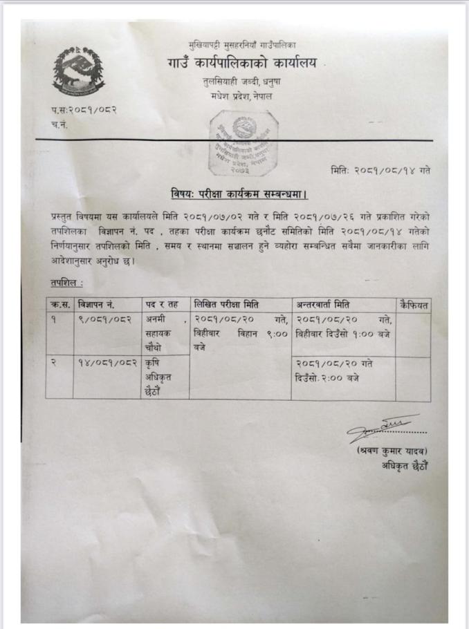 परिक्षा कार्यक्रम संचालन सम्बन्धमा