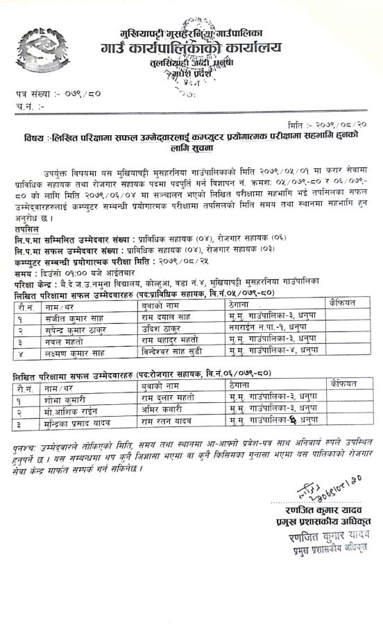 प्राविधिक सहायक र रोजगार सहायकको अन्तर्वाता सम्बन्धमा