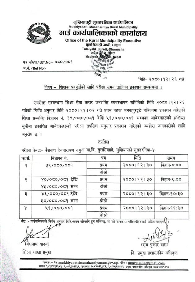 शीक्षक पदपूर्तिको लागि समय तालिका प्रकाशन सम्बन्धमा ।