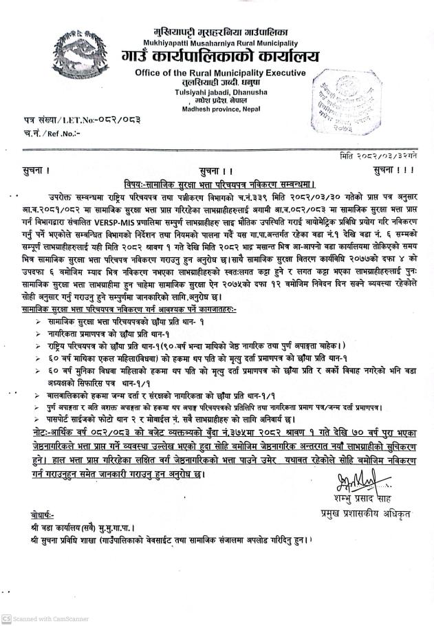 सामाजिक सुरक्षा भत्ता परिचयपत्र नविकरण सम्बन्धमा ।