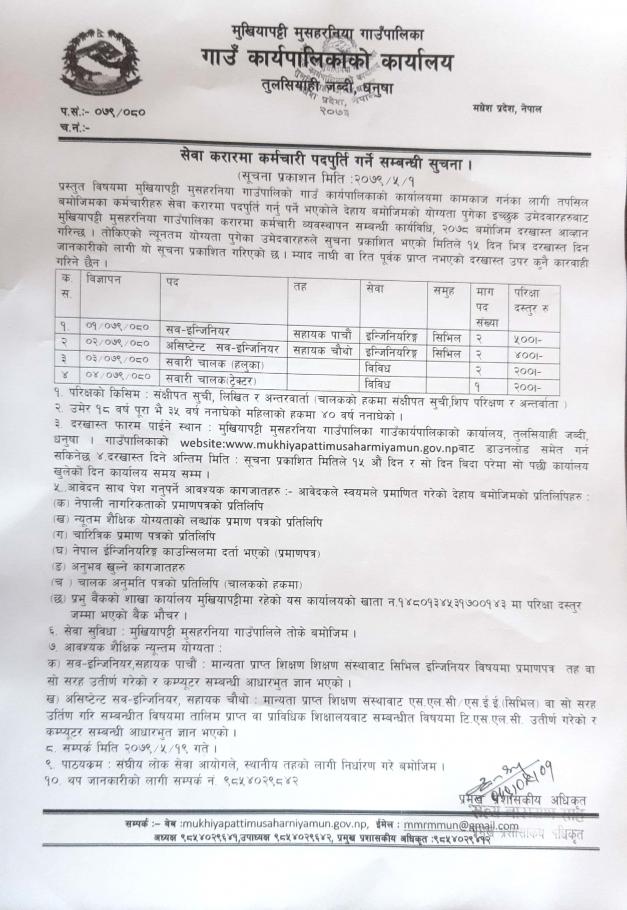 - सेवा करारमा पद पूर्ति सम्बन्धी सूचना