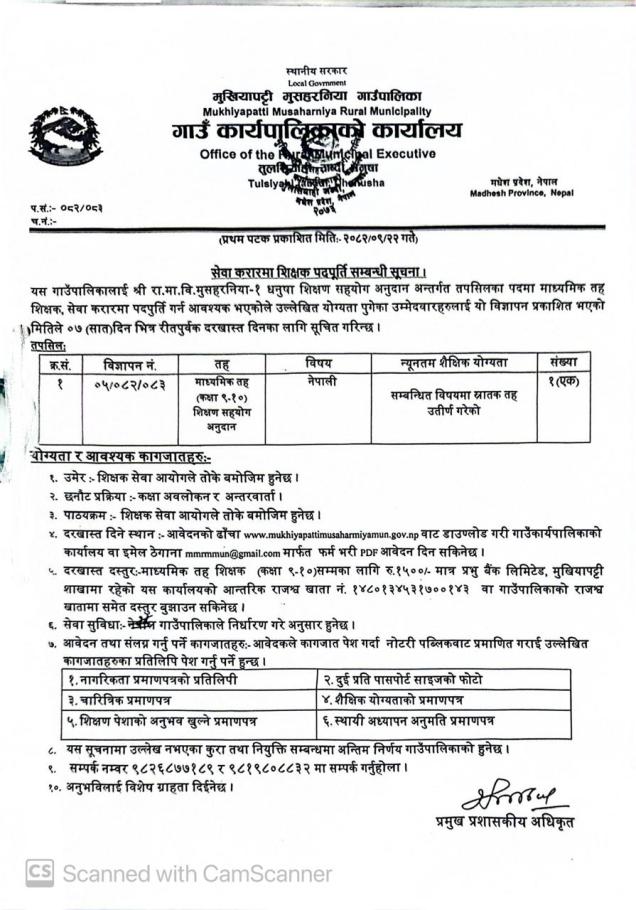 सेवा करारमा शिक्षक पदपूर्ति सम्बन्धी सूचना।