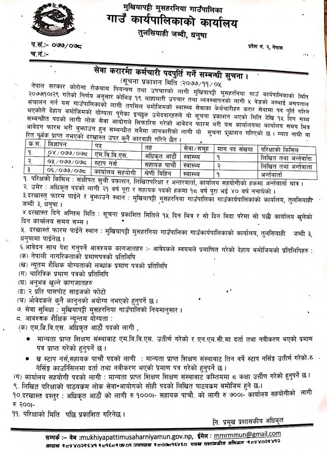 सेवा करार कर्मचारी पदपुिर्त सम्बन्धी सूचना