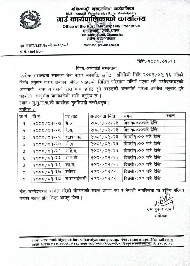 स्वास्थ्य सेवाको अन्तर्वार्ता सम्बन्धमा ।