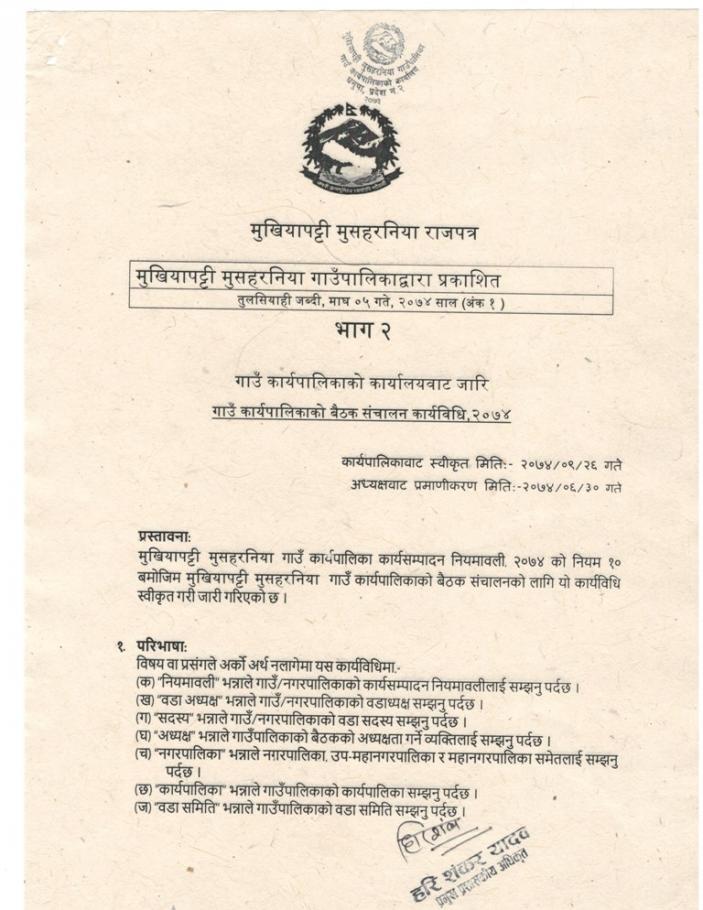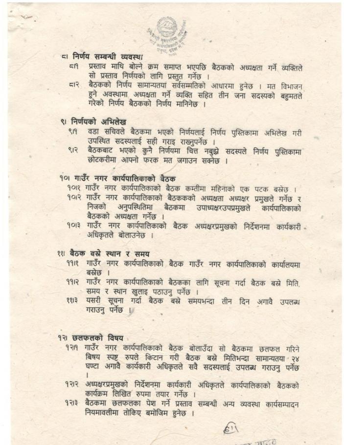 Karyapalika Baithak Sanchalan karyabidhi 2074