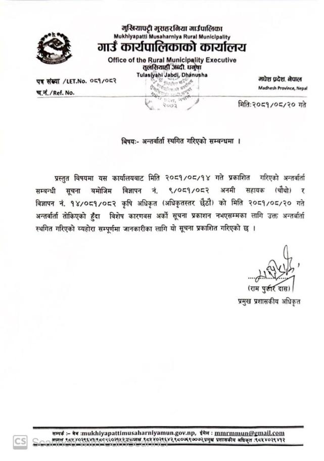 अन्तर्वार्ता स्थगित गरिएको सम्बन्धमा ।