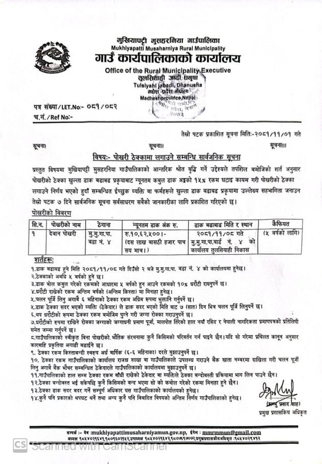 देवान पोखरी सम्बन्धी सार्वजनिक सूचना ।