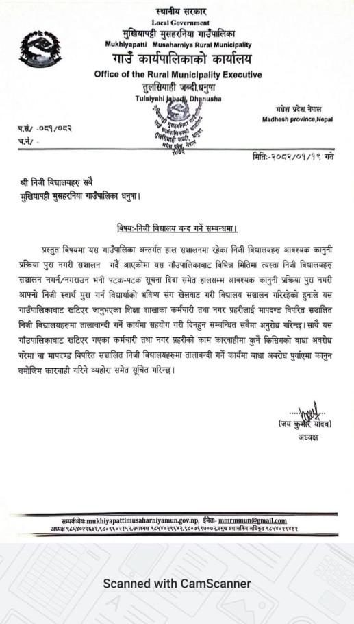 निजी विद्यालय बन्द गर्ने सम्बन्धमा ।