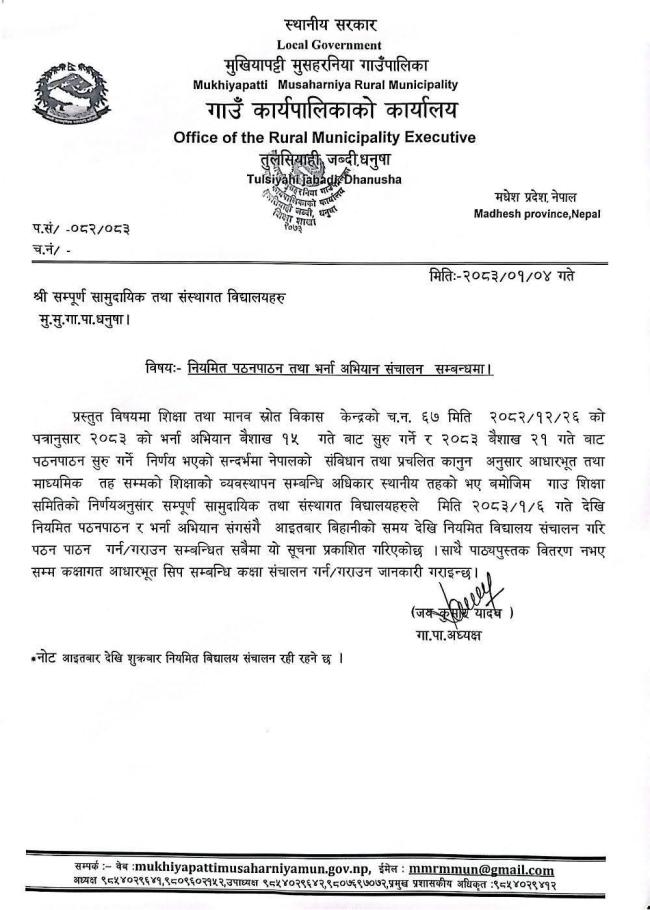 नियमित पठनपाठन तथा भर्ना अभियान सञ्चालन सम्बन्धमा।