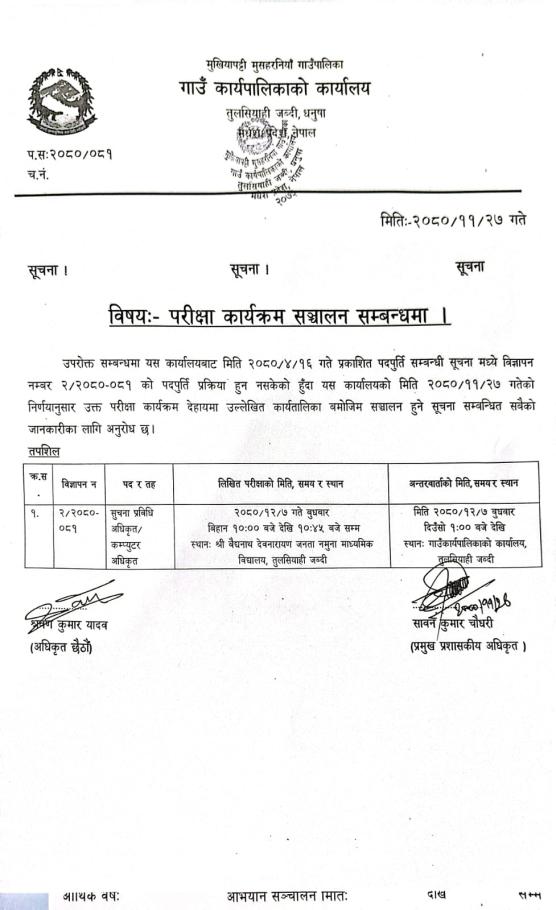 परिक्षा कार्यक्रम संचालन सम्बन्धमा ।