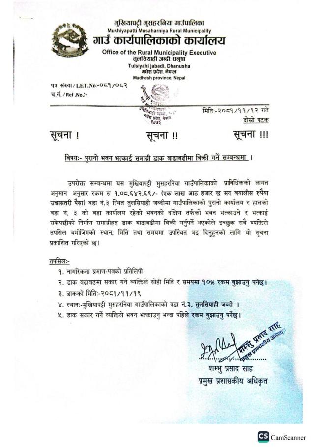 पुरानो भवन भत्काउने सम्बन्धी सूचना
