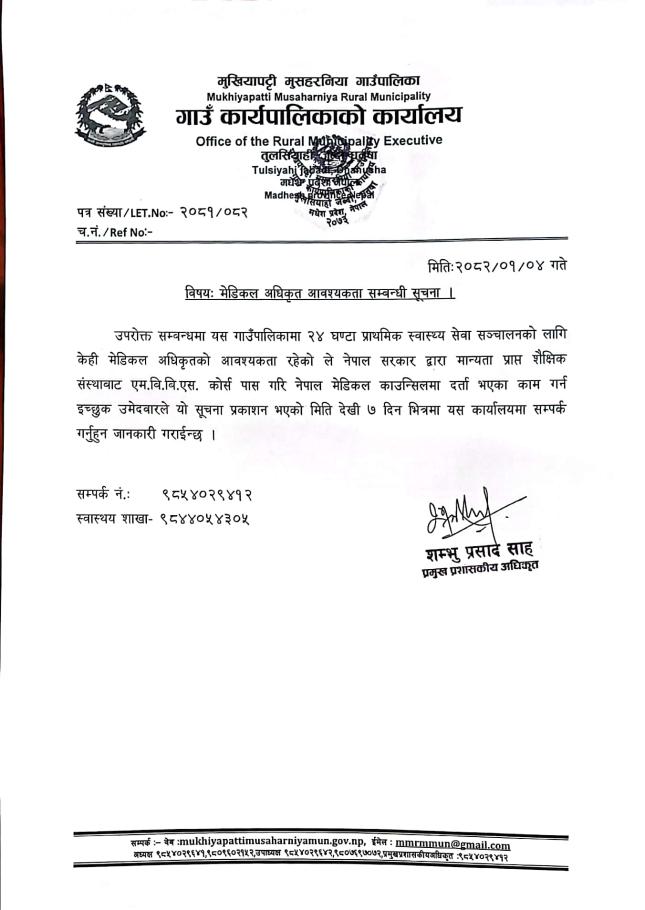 मेडिकल अधिकृत आवश्यक सम्बन्धी सूचना