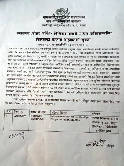 - मोटरसाईकल मर्मत सम्बन्धी तालिसको सूचना