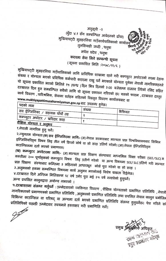 सव इन्जिनियर र कम्प्यूटर अपरेटरकाे करार सेवा सम्वन्धमा ।