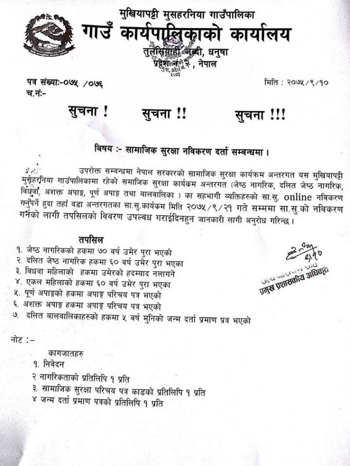 सामाजिक सुरक्षा नवीकरण सम्बन्धि सूचना