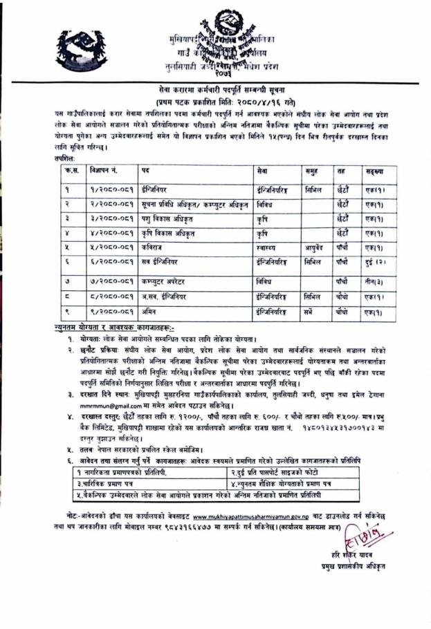 सेवा करारमा कर्मचारी पदपूर्ति सम्बन्धी सूचना