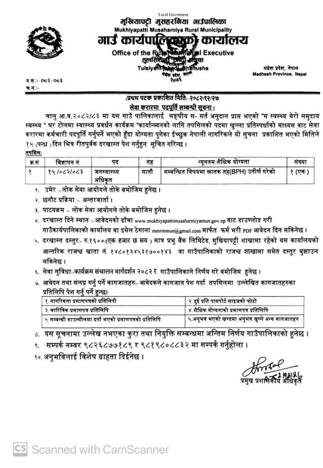 सेवा करारमा पदपूर्ति सम्बन्धी सुचना