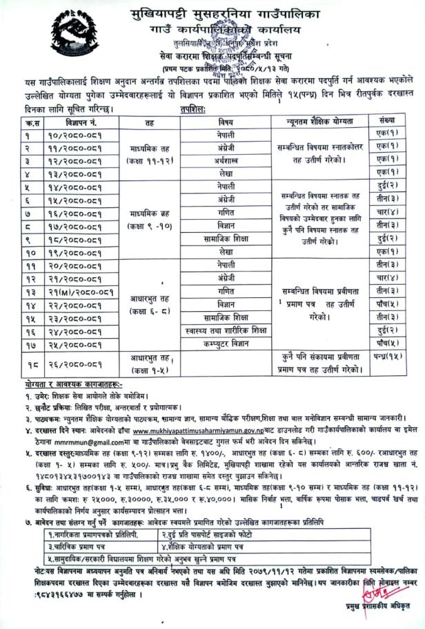 सेवा करारमा शिक्षकको पदपूर्ति सम्बन्धी ।