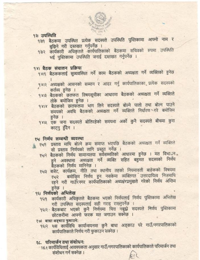 Karyapalika Baithak Sanchalan karyabidhi 2074